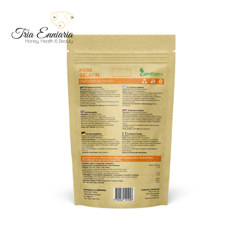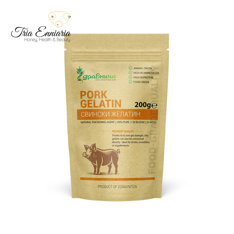 Gelatine, Schweinefleisch, für gesunde Gelenke, Zdravnitsa, 200 g.