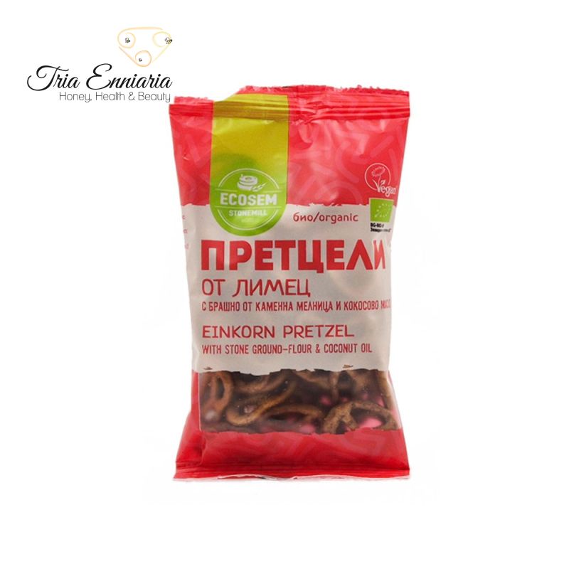 Pretzels integrales de espelta orgánica, elaborados con cariño y pensando en tu salud . La espelta es una variedad de trigo ancestral con bajo contenido en gluten, alcalina, rica en fibra, minerales, vitaminas, antioxidantes, betacarotenos y grasas naturales.